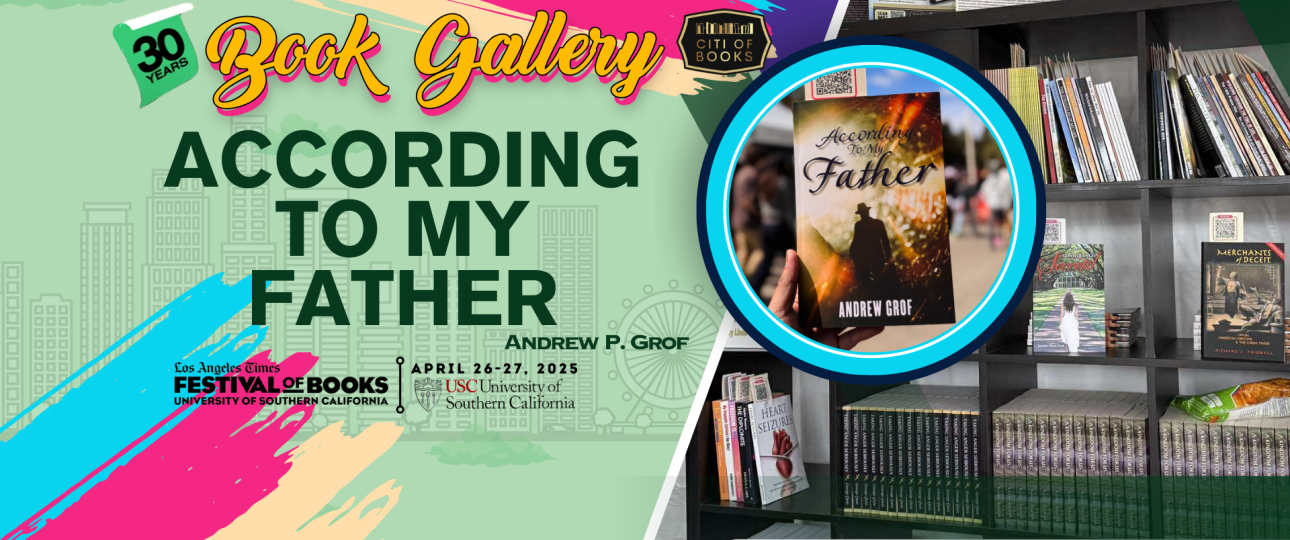 As we look back on this unforgettable weekend, we invite you to join us in reliving the highlights of Citi of Books’ gallery during the 30th Los Angeles Times Festival of Books—a true celebration of the literary arts! A book included in the gallery “According To My Father” by Andrew Grof.