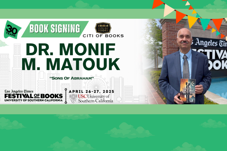 Dr. Monif M. Matouk held a memorable book signing during the 30th Los Angeles Times Festival of Books, the largest book festival in the United States, held on April 26-27, 2025. The event was set against the stunning backdrop of the University of Southern California campus, attracting around 150,000 attendees from Southern California and beyond.