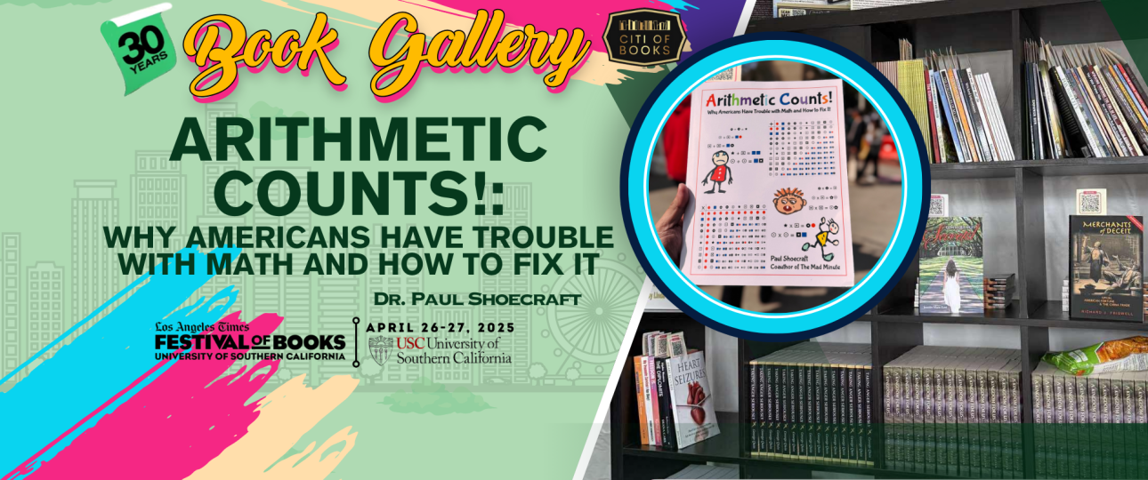 As we look back on this unforgettable weekend, we invite you to join us in reliving the highlights of Citi of Books’ gallery during the 30th Los Angeles Times Festival of Books—a true celebration of the literary arts! A book included in the gallery was “Arithmetic Counts!: Why Americans Have Trouble with Math and How to Fix It” by Dr. Paul Shoecraft.
