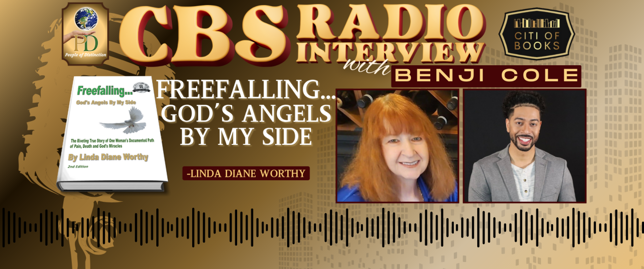 The author of the book “Freefalling…God’s Angels By My Side,” Linda Diane Worthy, was interviewed by Benji Cole of CBS Radio. They talked about the in-depth nature of the book’s theme and inspiration during the interview. This book is a riveting true story that chronicles one woman’s extraordinary journey through pain, death, and miraculous encounters with divine intervention.