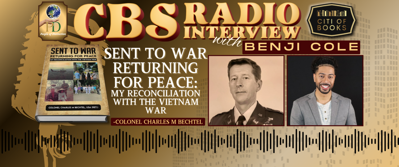 The author of the book “Sent To War Returning For Peace: My Reconciliation with the Vietnam War,” Col. Charles M. Bechtel, was interviewed by Benji Cole of CBS Radio. They talked about the in-depth nature of the book’s theme and inspiration during the interview. Bechtel’s decision to write this book stems from both personal and collective calling. For decades, many Vietnam veterans carried silent burdens—grief, trauma, unanswered questions, and the sting of a society that was often hostile upon their return. Bechtel’s journey back to Vietnam offered him a kind of closure, a way of transforming past pain into something meaningful. Inspired by this reconciliation trip, and by the resilience of his fellow veterans, he felt compelled to document his story.