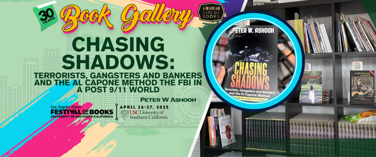 As we look back on this unforgettable weekend, we invite you to join us in reliving the highlights of Citi of Books’ gallery during the 30th Los Angeles Times Festival of Books—a true celebration of the literary arts! A book included in the gallery was “Chasing Shadows: Terrorists, Gangsters and Bankers and the Al Capone Method The FBI in a Post 9/11 World” by Peter W. Ashooh.