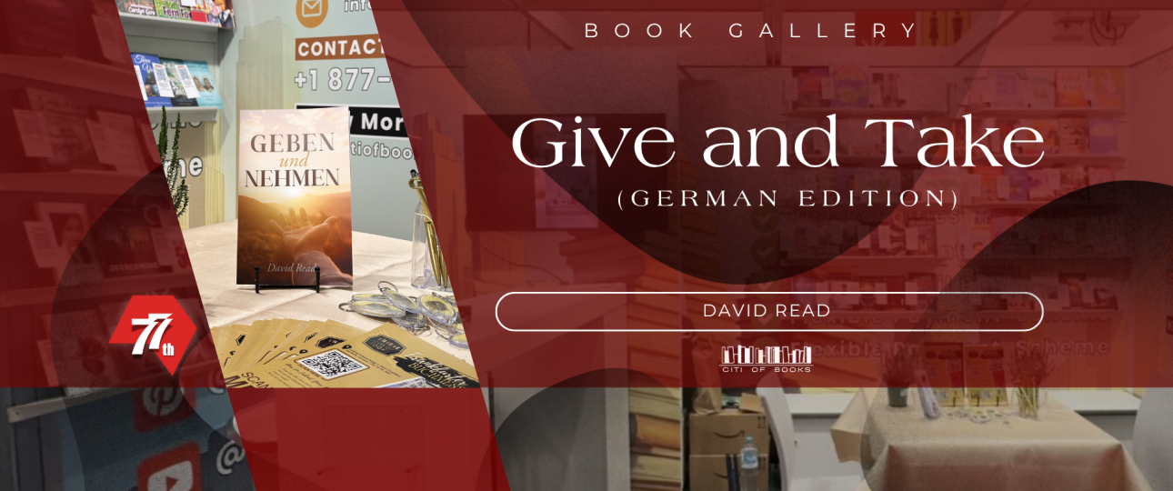 As the fair celebrates another successful year of bringing together the brightest minds in publishing, Citi of Books proudly joins the festivities at the 77th Frankfurter Buchmesse, showcasing inspiring titles from its talented authors. Among the featured works in the Book Gallery is “Geben und Nehmen” by David Read, the German Editionof “Give and Take” — an invitation for readers to reflect on the profound impact of our experiences and thoughts.