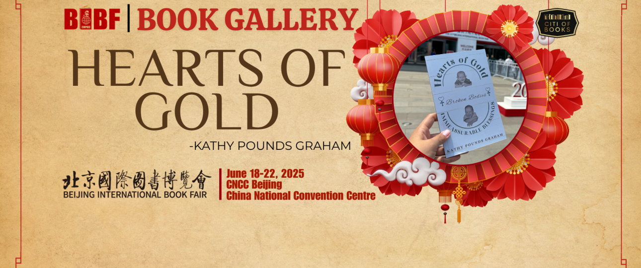 Citi of Books (COB) was thrilled to be part of this prestigious event! Traveling all the way from Albuquerque to Beijing, COB proudly featured 14 remarkable titles from our talented authors. Among the standout selections that captivated attendees with its insightful approach was “Hearts Of Gold: Broken Bodies, Immeasurable Blessings” by Kathy Pounds Graham.