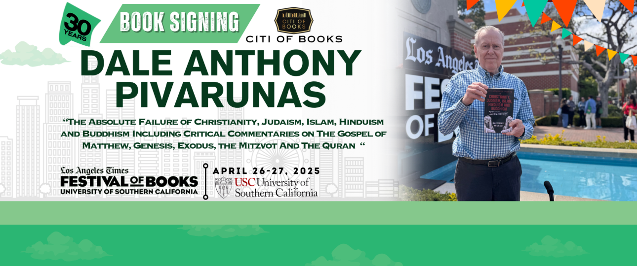 In collaboration with Citi of Books, the author of “The Absolute Failure of Christianity, Judaism, Islam, Hinduism and Buddhism Including Critical Commentaries on The Gospel of Matthew, Genesis, Exodus, the Mitzvot And The Quran,” Dale Anthony Pivarunas, held a successful book signing event during the 2025 Los Angeles Times Festival of Books.
