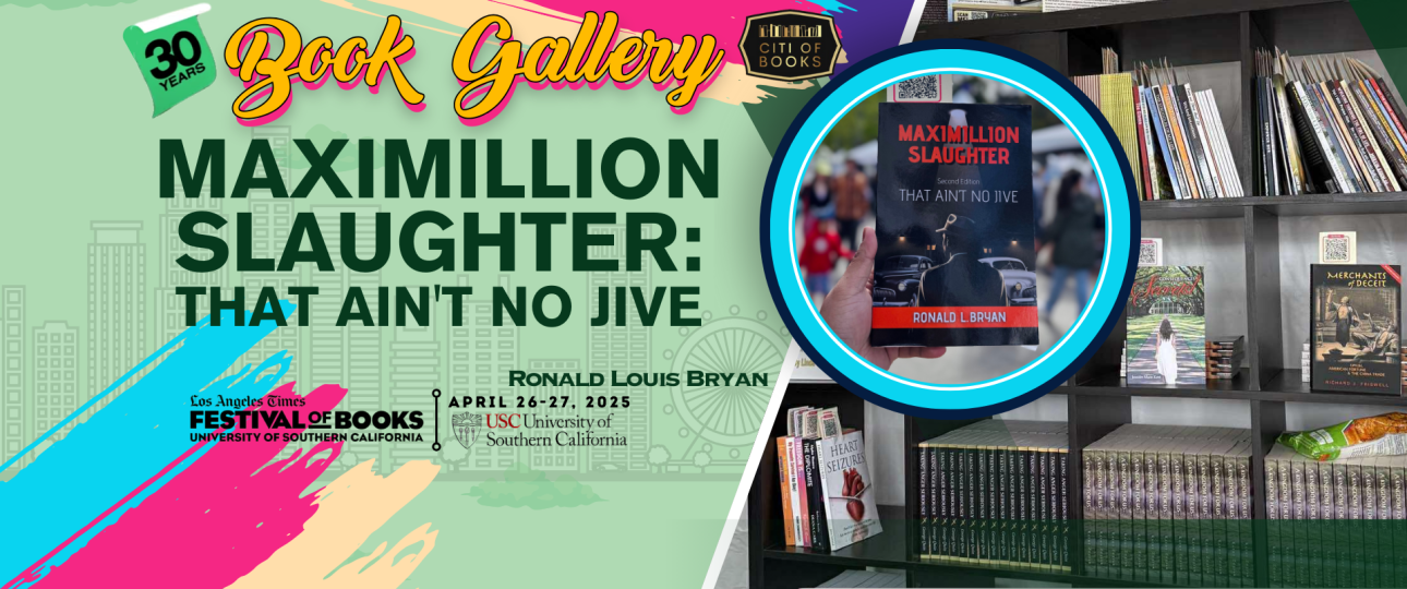 As we look back on this unforgettable weekend, we invite you to join us in reliving the highlights of Citi of Books’ gallery during the 30th Los Angeles Times Festival of Books—a true celebration of the literary arts! A book included in the gallery was “Maximillion Slaughter: That Ain’t No Jive” by Ronald Louis Bryan.