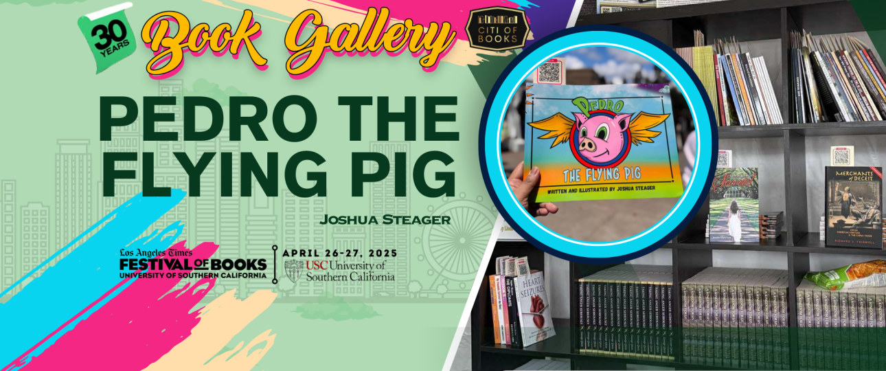 As we look back on this unforgettable weekend, we invite you to join us in reliving the highlights of Citi of Books’ gallery during the 30th Los Angeles Times Festival of Books—a true celebration of the literary arts! A book included in the gallery was “Pedro the Flying Pig” by Joshua Steager.