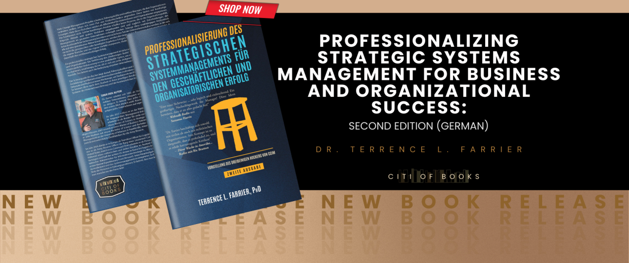 “Professionalizing Strategic Systems Management for Business and Organizational Success: Second Edition (German)” by Dr. Terrence Farrier presents a practical framework for both training and cultivating a culture of continuous improvement across companies and organizations. Whether in civilian industries, government institutions, or military operations, this model proves essential for sustaining effective business practices. Proudly published by Citi of Books, this is now available on Amazon, Barnes & Noble, and other major retail platforms.