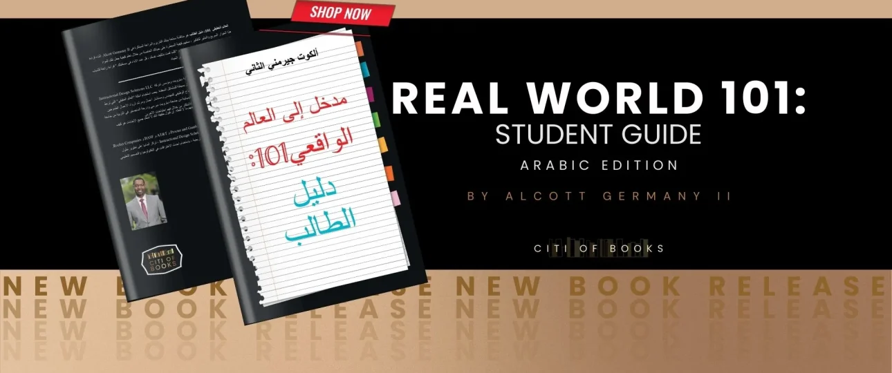 Excitingly, “Real World 101: Student Guide” by Alcott Germany II is now available in Arabic! This edition makes it possible for even more families and readers of all ages to learn from Alcott’s message in their native language. Whether you’re reading it as Arabic or the original English version, this book offers an inspiring guide that offers fun and insightful discussion between you, the reader, and the innovative mind of Alcott Germany II.