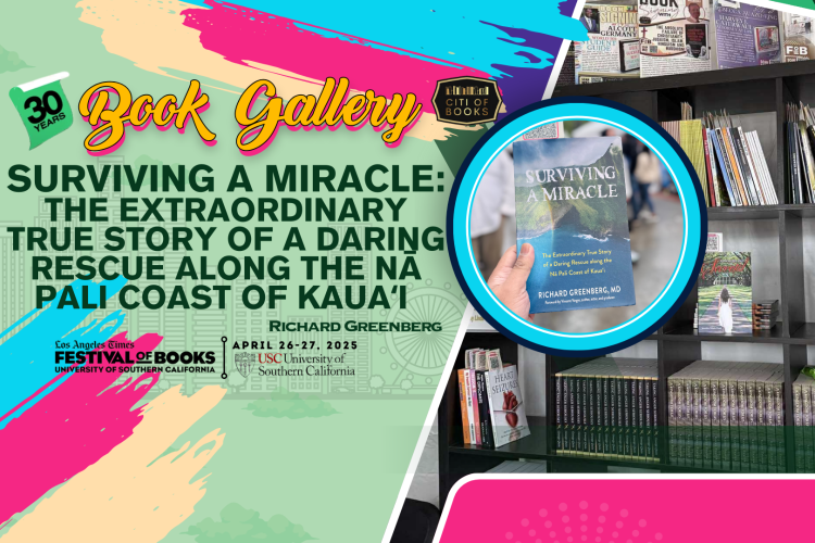 “Surviving A Miracle: The Extraordinary True Story of a Daring Rescue along the Nā Pali Coast of Kauaʻi” by Richard Greenberg was displayed at the 30th Los Angeles Times Festival of Books – Book Gallery