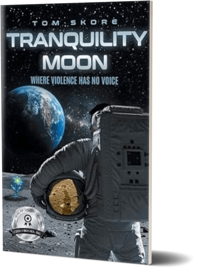 “Tranquility Moon: A Freedom from Violence Science Fiction Fantasy” by Tom Skore takes place in a near-future world haunted by violence, where a desperate demand for peace leads humanity to the Moon—and to unexpected allies. The novel centers on the titular lunar setting and the alien encounter that changes everything.